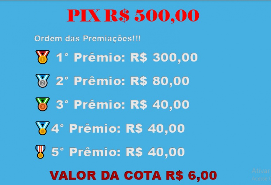 PREMIAÇÃO TOTAL DE R$ 500,00!!!