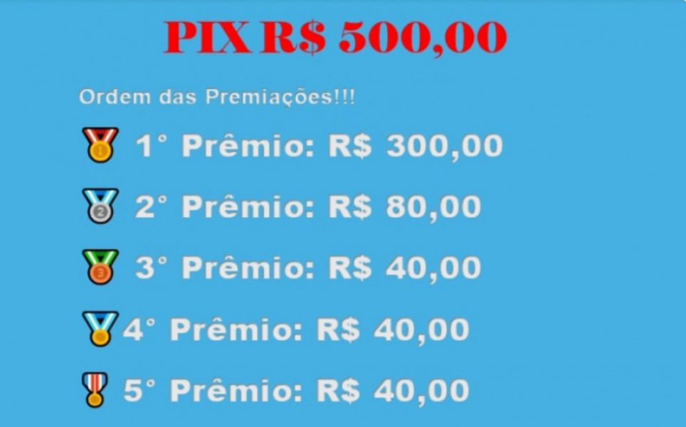 PREMIAÇÃO TOTAL DE R$ 500,00!!!
