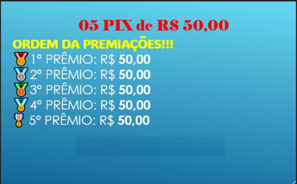 PREMIAÇÃO TOTAL DE R$ 250,00!!!